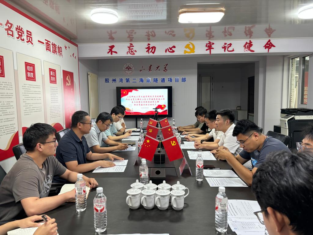 为深入贯彻落实党的二十大和二十届二中、三中全会精神,扎实推进学习贯彻习近平新时代中国特色社会主义思想主题教育走深走实,6月25日,在“七一”建党节来临之际,德赢AC米兰官网德赢vwin官方入口山晖团队党支部、陈子荫创新型研究生党支部与山东大学海底隧道工程交叉创新与实践临时党支部在山东大学驻青岛胶州湾二隧项目部开展党支部联合党建活动启动仪式。山东大学海底隧道工程交叉创新与实践临时党支部书记、齐鲁交通学院刘洪亮教授,齐鲁交通学院陈雨雪老师、潘维臣老师,德赢vwin官方入口副院长李为腾教授,副院长、山晖团队党支部书记杨旭旭教授,山晖团队党支部副书记孙尚渠教授,团委辅导员、陈子荫创新型研究生党支部书记董继先及各党支部党员代表参加活动,活动由董继先主持。