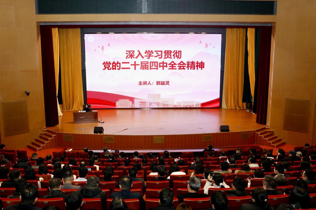为深入学习宣传贯彻党的二十届四中全会精神,进一步凝聚共识、明确方向,切实把思想和行动统一到党中央决策部署上来,12月16日,校党委副书记郭益灵作《深入学习贯彻党的二十届四中全会精神》专题宣讲报告,学院师生党员及所联系班级学生认真听取宣讲报告。