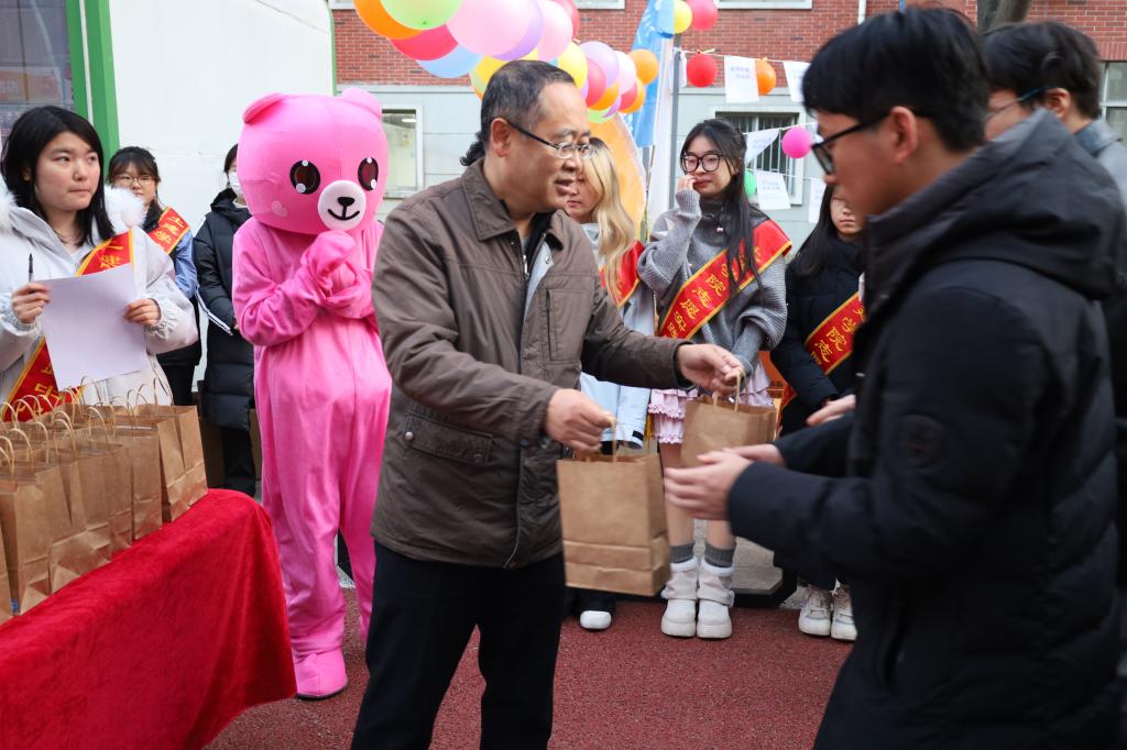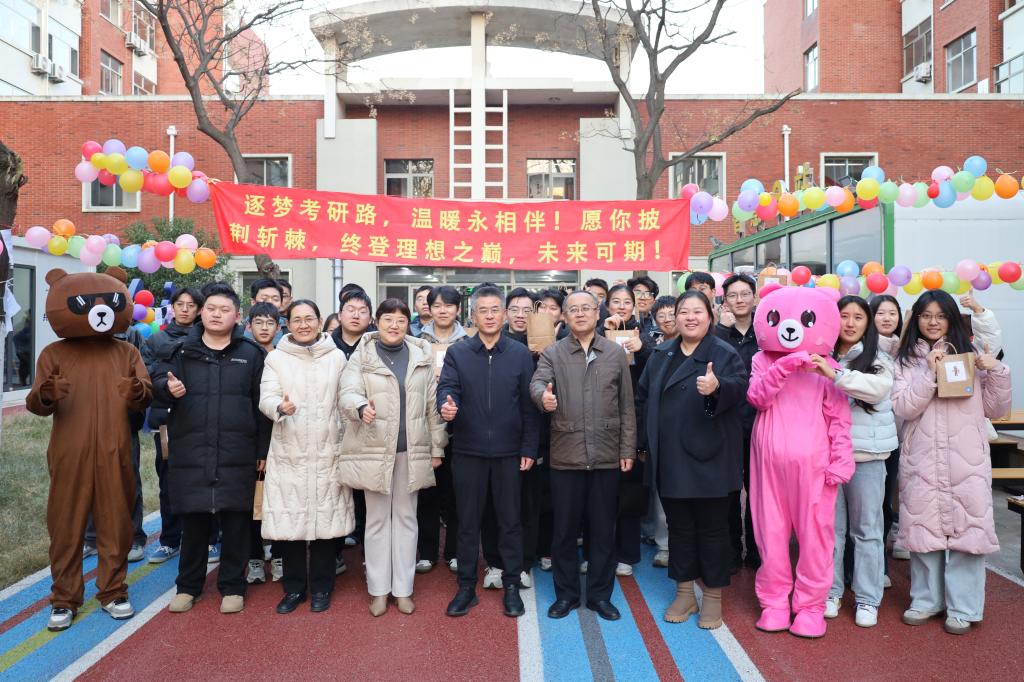 考研冲刺的冬日里,一份暖心关怀在校园悄然传递。12月8日,德赢vwin官方入口B2-B4学生一站式社区的U+空间,变身成为一座暖意融融的“梦想加油站”,一场别开生面的考研助力活动在此活力上演,学院党委书记宋西路、院长王崇革、党委副书记兼副院长高静亲临现场,与毕业生辅导员张方源及师生代表一道,为即将奔赴考场的学子们加油打气、减压赋能。