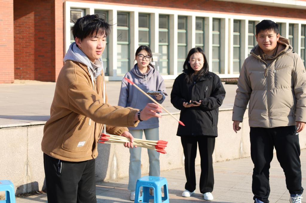 本次越野赛以“趣味闯关+校园探索”为核心,打破传统竞技赛事的单一模式,将科创园区田径运动场、钟楼广场、名人园、励志坊、砚湖篮球场等校园地标串联成赛事路线,设置点球挑战、四人五足、吹乒乓球接力、知识竞赛、定点投篮、投壶等七大趣味打卡任务,既考验参赛队伍的团队协作能力,又让学生在闯关过程中加深对校园环境的熟悉度,增强校园归属感。活动中,参赛学生自由组建4人团队,通过抽签分为四个批次依次出发,各队伍分工协作、相互配合,在不同打卡点全力以赴完成任务,赛道上满是欢声笑语与拼搏身影。后勤组与裁判组全程坚守岗位,提供物资补给、路线指引与任务判定服务,督察组严格监督赛事公平性,确保活动有序推进。最终,主办方根据各队伍完成全程的用时长短,评选出冠军、亚军、季军队伍,并颁发精神风貌奖、奋勇拼搏奖,以表彰参赛队伍的优异表现。