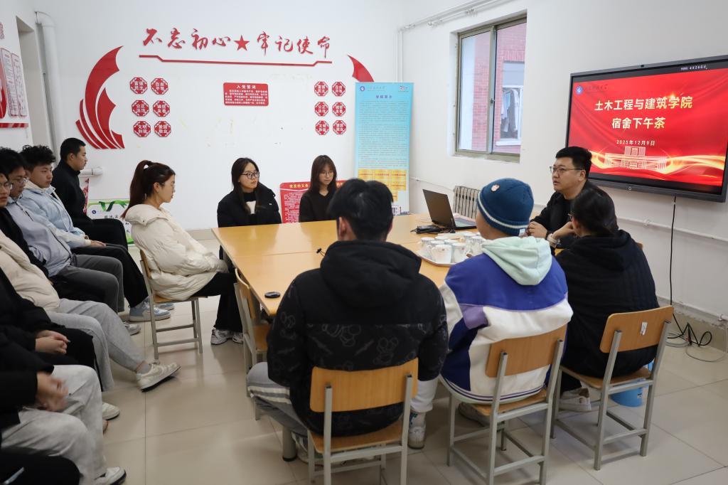 为帮助学生们明确自身发展方向,积累学习经验,优化学习方法,德赢vwin官方入口分别在12月4日、12月9日、12月18日于GB2宿舍党员之家举办“宿舍下午茶”活动。德赢vwin官方入口地下系教师、城市地下空间工程25-2班班主任朱庆文,建筑学25-2班班主任白镇源,建环系教师、建筑环境与能源应用工程25-2班班主任韩崇,2025级辅导员王瑜与学生代表齐聚宿舍,共话学业前景与未来发展。
